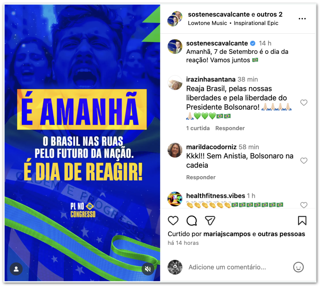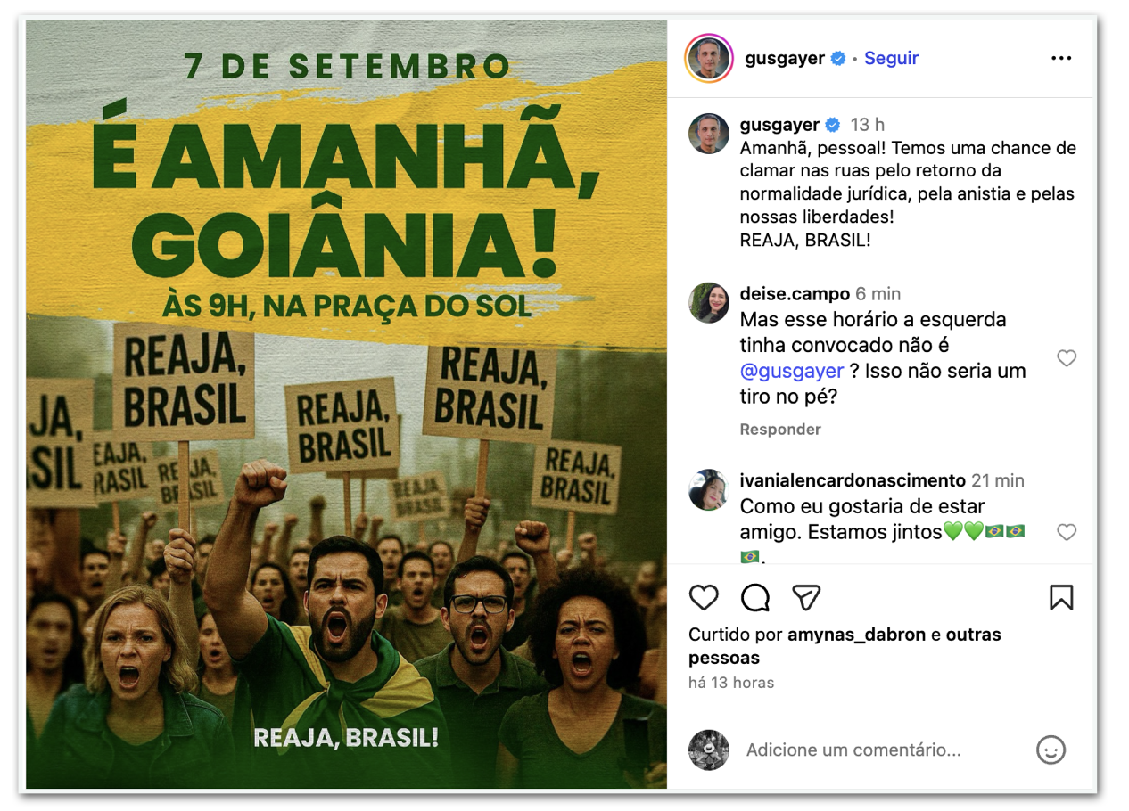 A data coincide com o feriado da Independência, tradicionalmente usado por oposicionistas para protestar contra o Judiciário e o governo do presidente Luiz Inácio Lula da Silva (PT).
