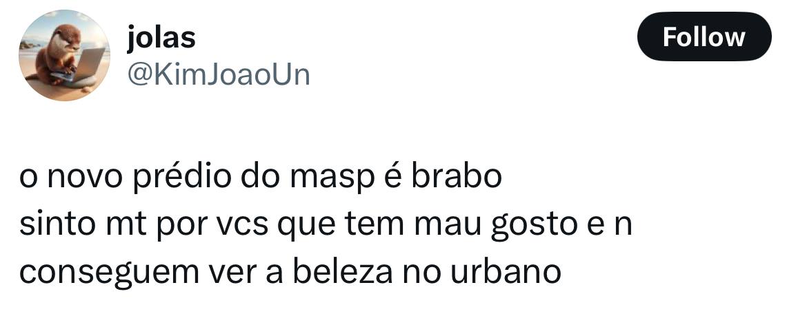 “O prédio da Lina Bo Bardi, quando ela inaugurou, deve ter causado um bom estranhamento e dividido bastante opiniões naquela época. Hoje, é o ícone da cidade de São Paulo, um dos símbolos máximos da arquitetura brutalista no mundo. Então, eu acho que a gente tem que dar um tempo para o edifício novo também ser lido e ser entendido pelas gerações futuras”, defende o diretor.