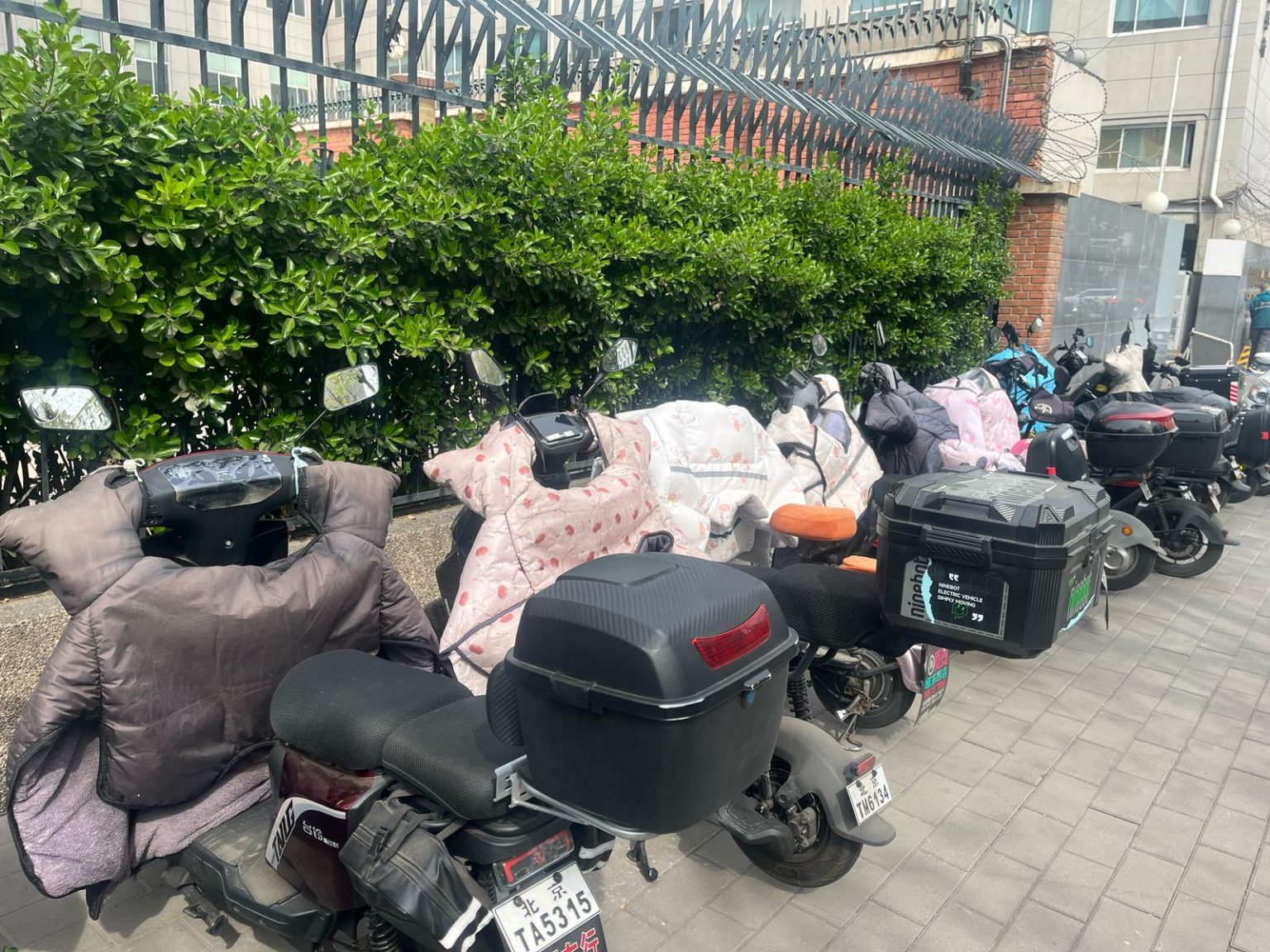 Os chineses deixam os casacos nas motos quando estacionam os veículos