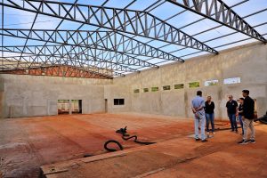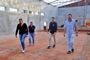 Na manhã de hoje, terça-feira (06), a Secretária de Educação Verônica Szerwieski Rui, acompanhada de técnicos da equipe da Secretaria, fiscal da obra engenheiro Anderson Bialeski e Odair Buss engenheiro responsável pela execução do projeto, visitou o canteiro de obras da nova Escola Carlos Gomes. O objetivo da visita, segundo a Secretária, foi para acompanhar a evolução dos trabalhos e definir alguns pontos com relação ao acabamento referente à pisos e pinturas de estruturas.